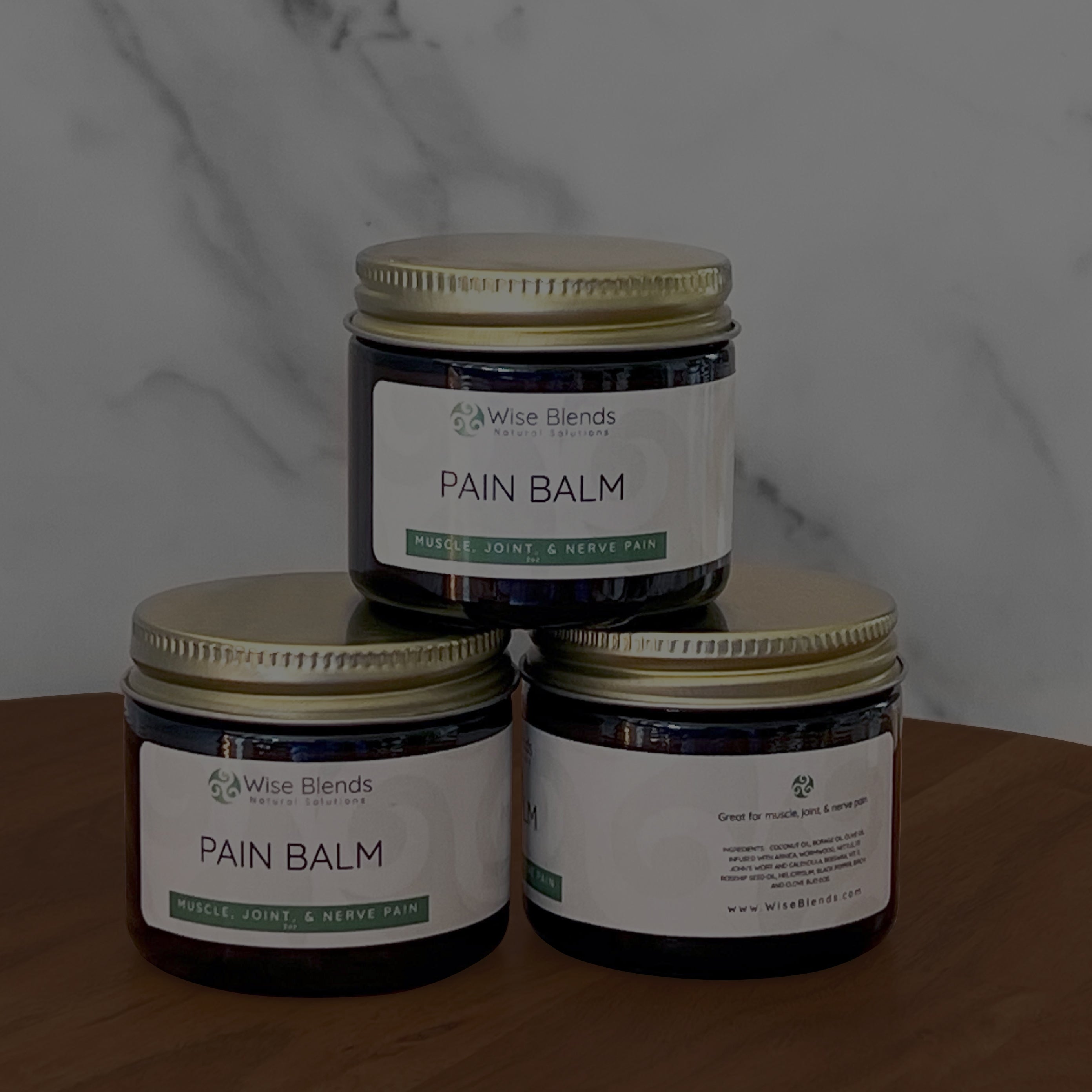“I've been using Wise Blends Healing Salve on minor cuts and burns, and also on the small dark purple bruises I've been getting on my hands from even a small bump in my over-60 years. I'm really happy with the speedy healing, especially on those dark purple spots. And the healing salve and pain balm have been successful gifts to my friends. Thanks for these thoughtful products”